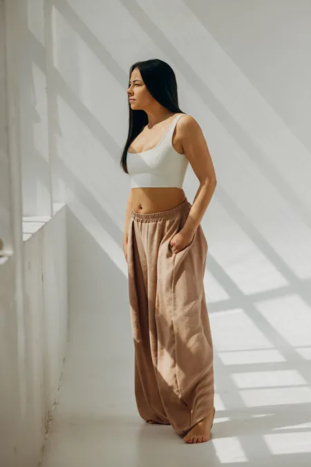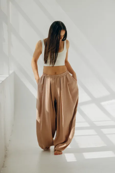 Pokret, ali uz potpunu udobnost. Širina kroja za isto tako široke i slobodne pokrete. Najmekša viskoza guste gramaže koja savršeno pada, duboki džepovi i izrez sa zadnje strane gležnjeva. Sve su to objedinile 𝘚𝘦𝘯𝘪𝘫𝘢 pantalone, još jedan komad koji možete nositi na raznu obuću, u raznim prilikama.