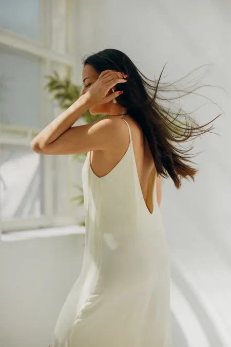 Inspirisane ženskim telom i pokretom, kreiramo vanvremenske komade od laganih, prirodnih materijala, sa uživanjem u tom stvaranju i idejom o promišljenoj kupovini. Volimo kada ih nosite iz sezone u sezonu, kada ih održavate i kombinujete u raznim prilikama.