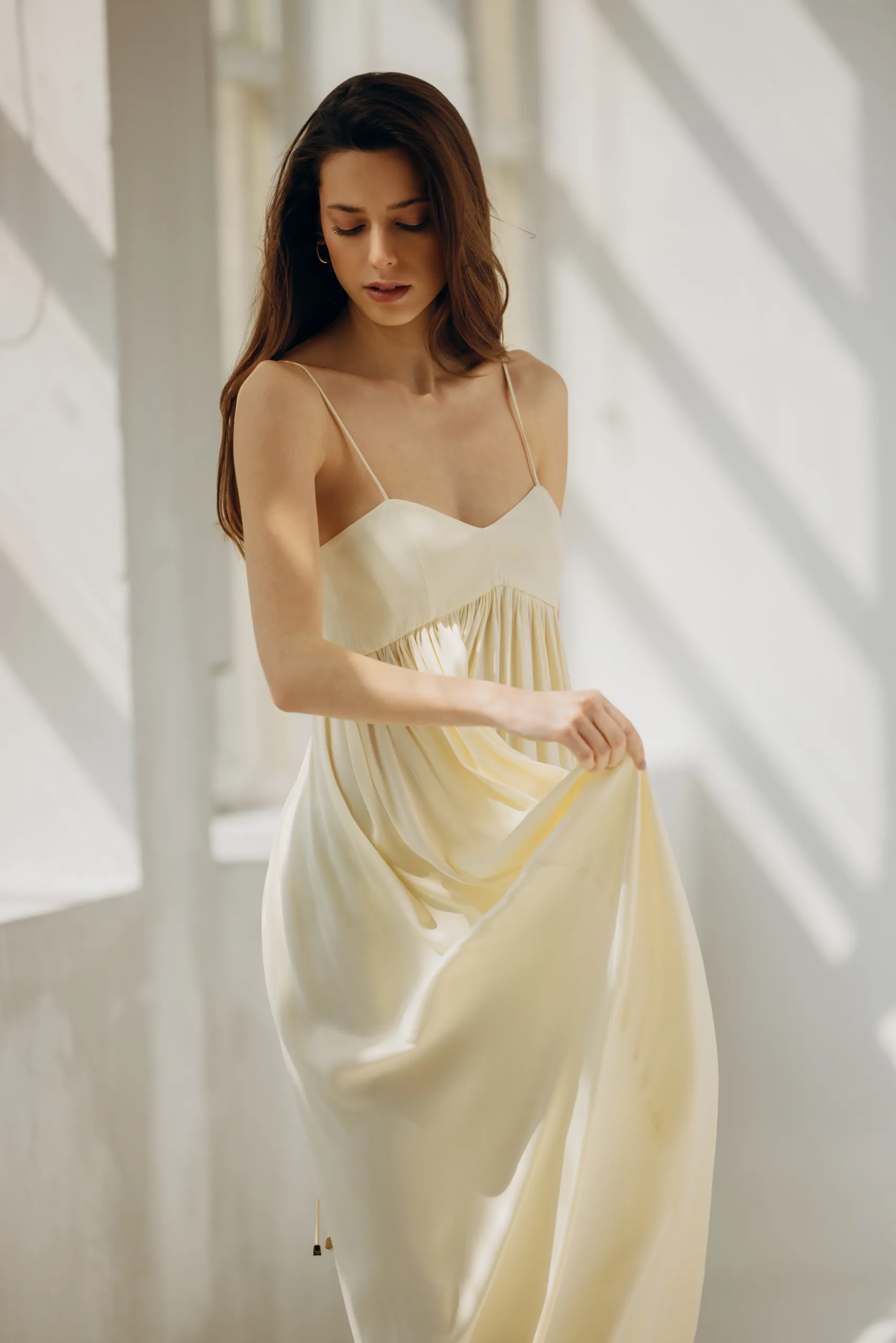 Toliko ženstvena, lagana, hladi kožu i savršeno pada. Haljina Java nas poziva da otkrijemo leđa i ramena, i prošetamo kroz topli dan, do plaže, oltara, ili proslave rođendana. A, ono što je posebno krasi je činjenica da mogu da je nose i trudnice, budući da je sećena odmah ispod grudi. Čista proslava Žene!